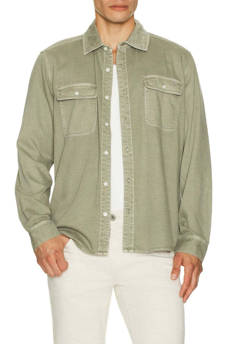 Designed with a Vintage Dried Lemongrass hue, this Martin Shirt by PAIGE features a button-up front, patch pockets, and a straight cut for a casual, relaxed look.