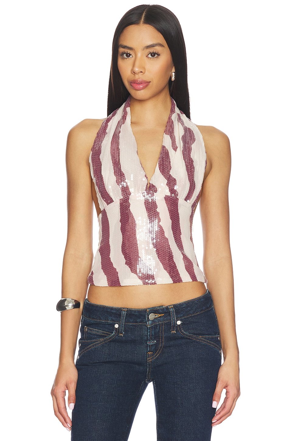 The Revolve Miaou Zebra Sequin Halter Top is ideal for party, evening.