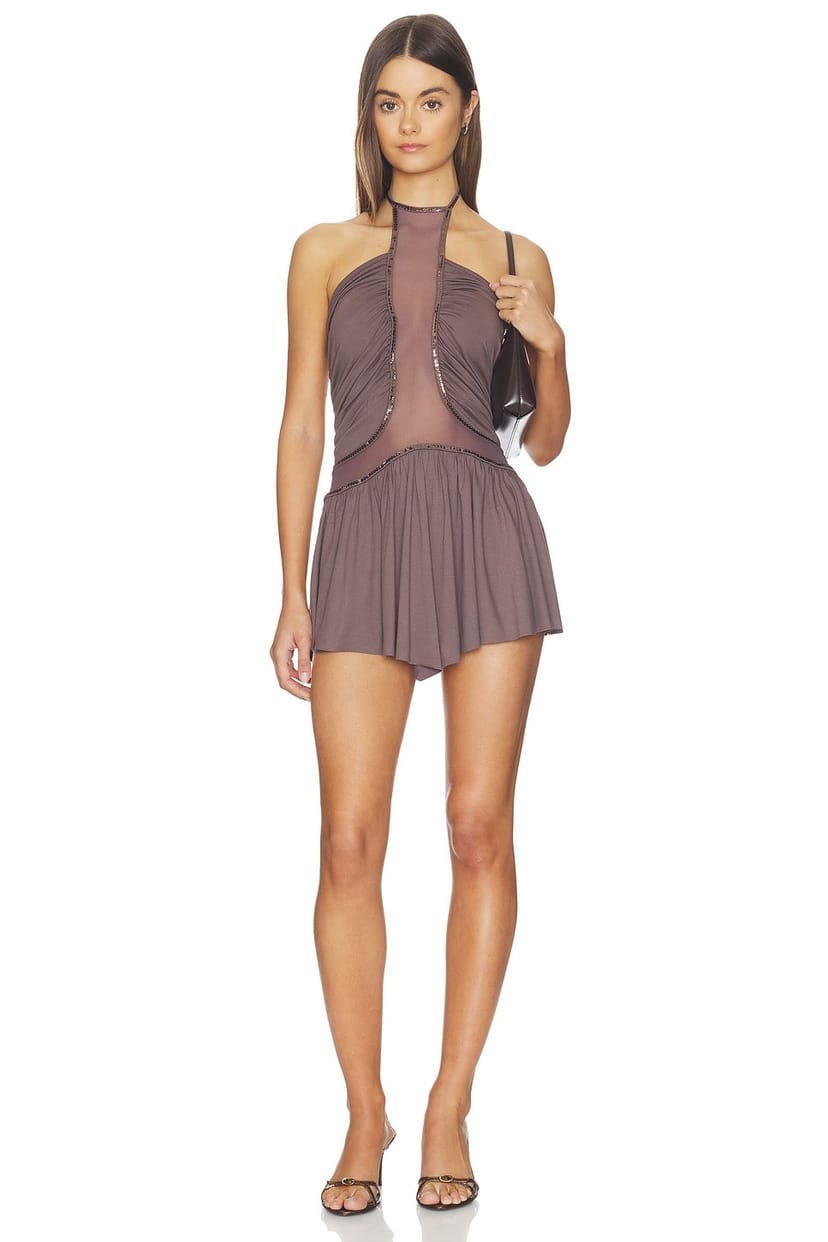 The Jaded London Brown Mesh Sequin Trim Mini Dress is ideal for evening, party.