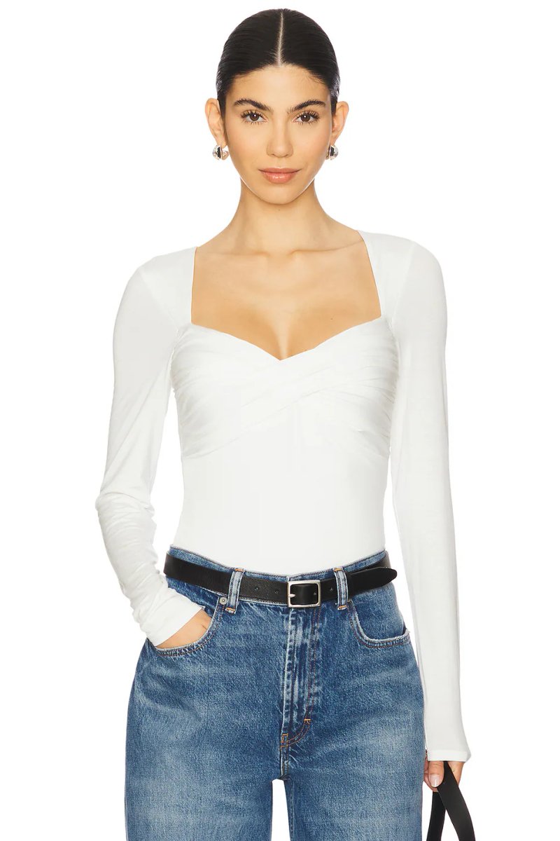 The Revolve Mikka Bodysuit with Long Sleeves in White is ideal for casual, evening.