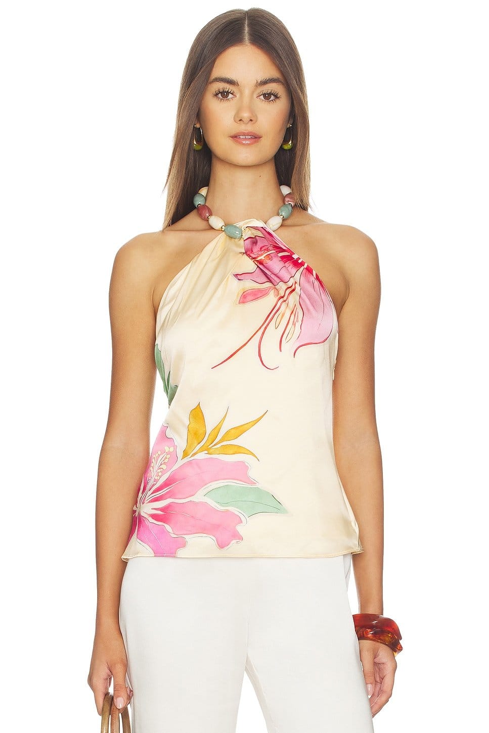 The Revolve Ivory Floral Milani Halter Top is ideal for casual, beach, outings.