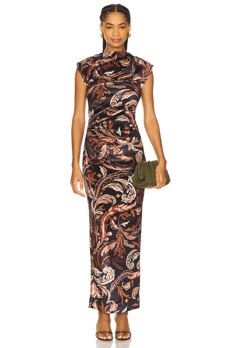 The Revolve Mock Neck Midi Dress in Brown is ideal for evening, formal.