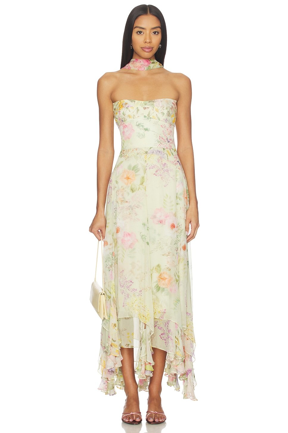 The Revolve Floral Print Strapless Midi Dress with Scarf is ideal for evening, formal.