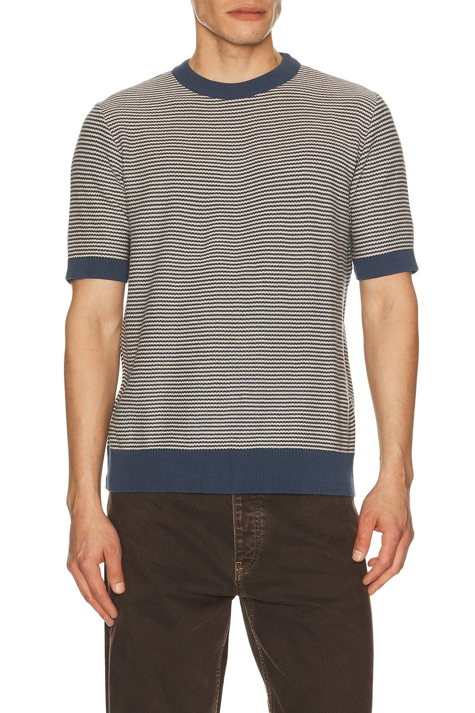 The Revolve Newport Knitted Tee in Blue & Sand Strip is ideal for casual.