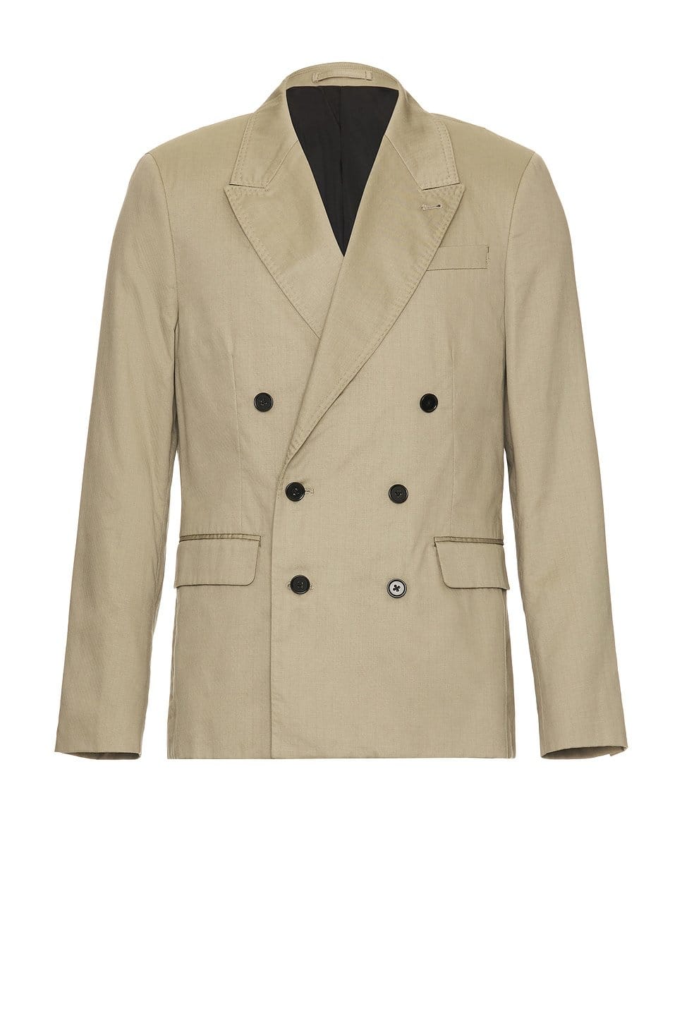 Stone Grey ALLSAINTS Newton Blazer — the perfect addition to your formal wardrobe. Designed with Stone Grey, double-breasted, peak lapel, button closure, linen. Features a classic, professional style for a versatile look.