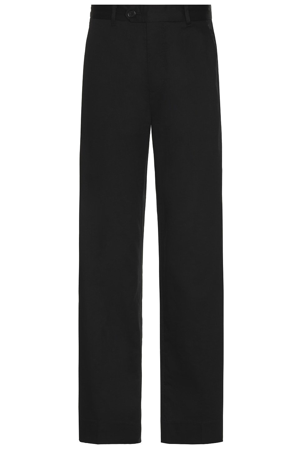 The Newton Trouser by ALLSAINTS is a modern piece crafted from black cotton with a straight leg cut. The trousers feature a button and zipper closure, offering a sleek and polished look.