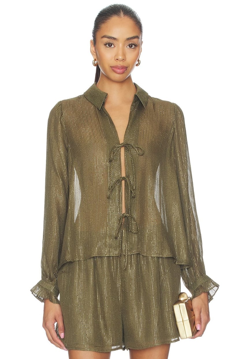 The Niecey Metallic Chiffon Blouse by CAMI NYC in Grove is ideal for casual, evening, date-night.
