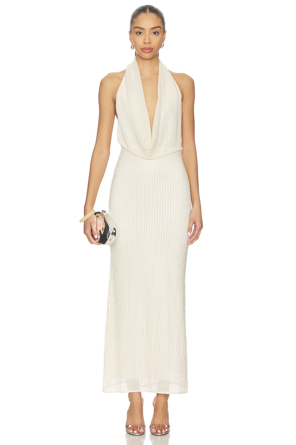 The Revolve Bardot Sequin Cowl Maxi Dress in Buttercup is ideal for evening, special occasion.