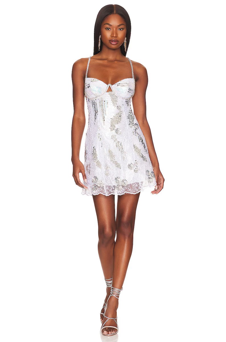 The For Love & Lemons Silver Opal Mini Dress is ideal for evening, party.