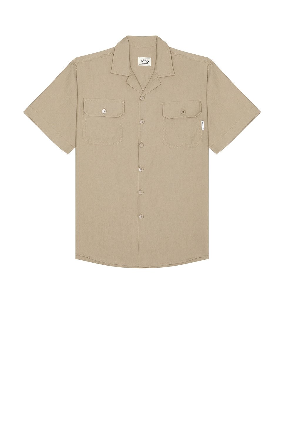 The Revolve Khaki Beige Open Collar Shirt is available in sizes XXXL, XXL, XL, XS, L, M, S.