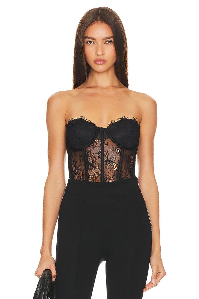 The Revolve Retrofete Corset Bodysuit in Black is ideal for evening, night out.