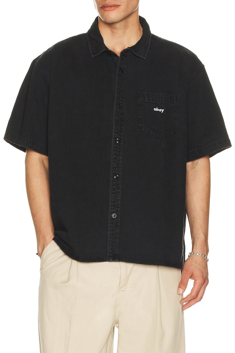 This Faded Black short-sleeve shirt from Obey is perfect for a laid-back look. Made from denim, it features a button-front and a chest pocket, ensuring both style and practicality.