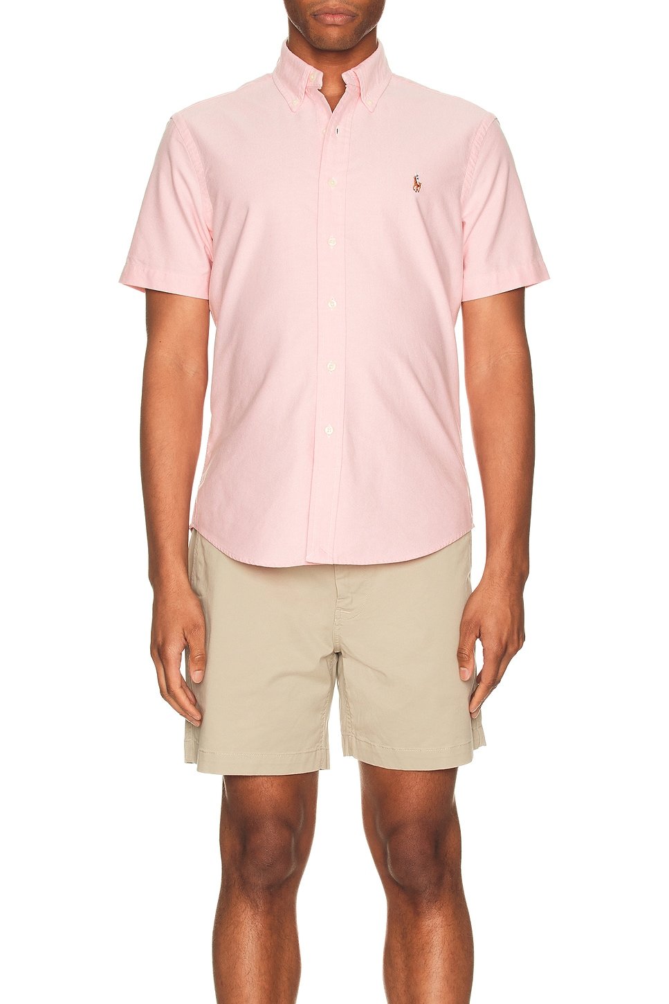 The Polo Ralph Lauren Pink Short Sleeve Oxford Shirt is available in sizes XXXL, XXL, XL, XS, L, M, S.