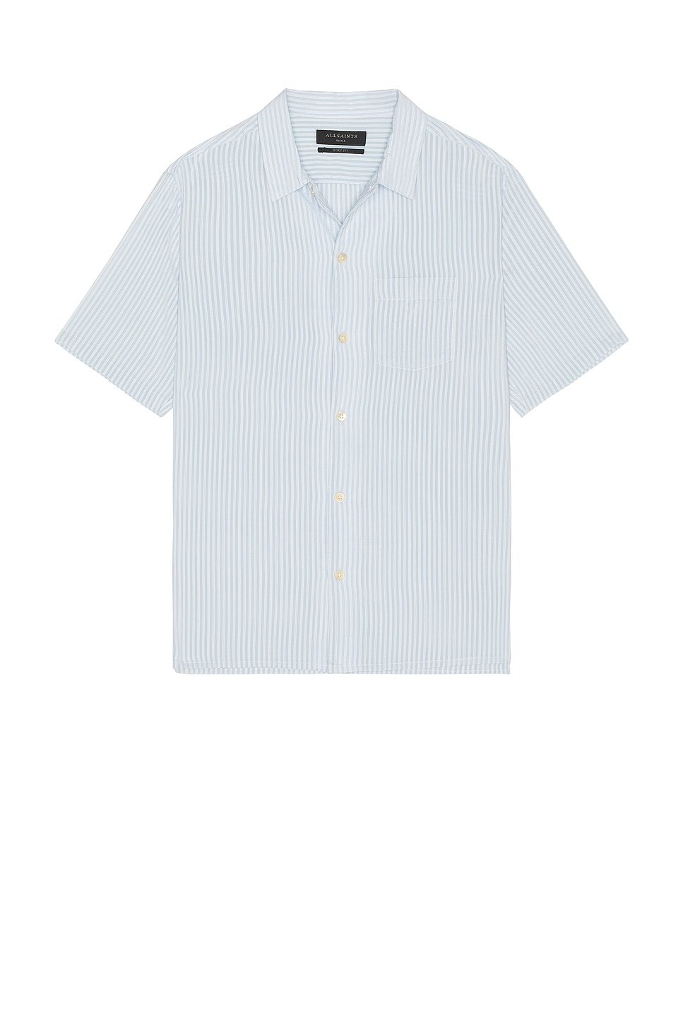 Elegant and versatile, this ALLSAINTS Perry Striped Shirt is crafted in Kentucky Blue. Featuring a short sleeve design, it ensures comfort and style. Ideal for casual and smart-casual occasions.