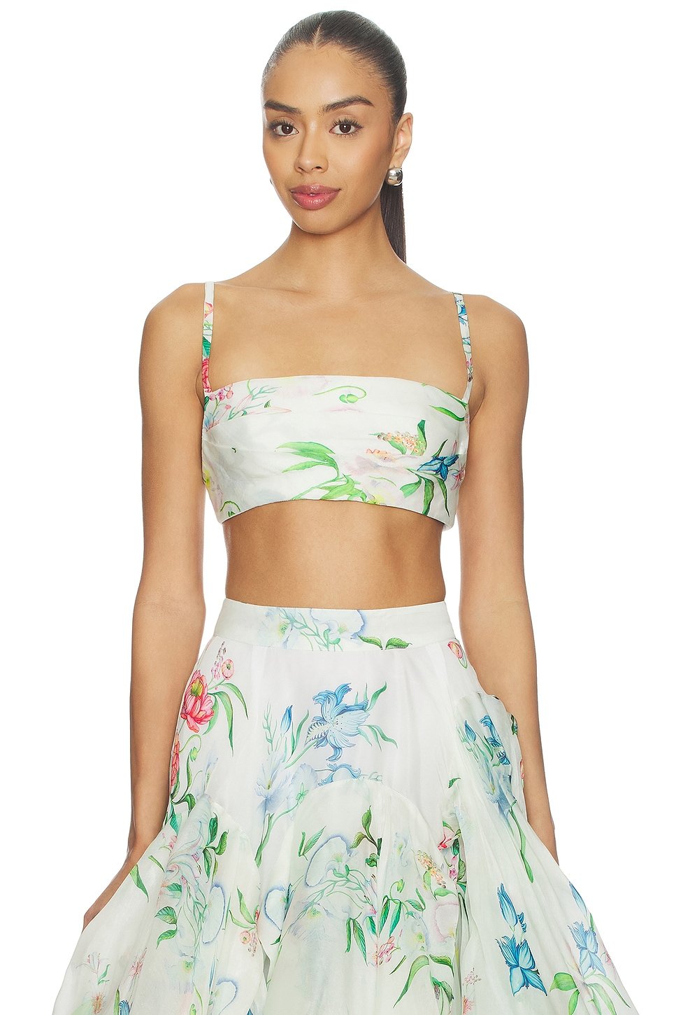 This floral print bralette top by Revolve is perfect for a casual day out. The top features a strapless neckline and adjustable straps, giving you a flexible fit. Made from lightweight fabric, it ensures comfort while adding a touch of floral elegance to your outfit.