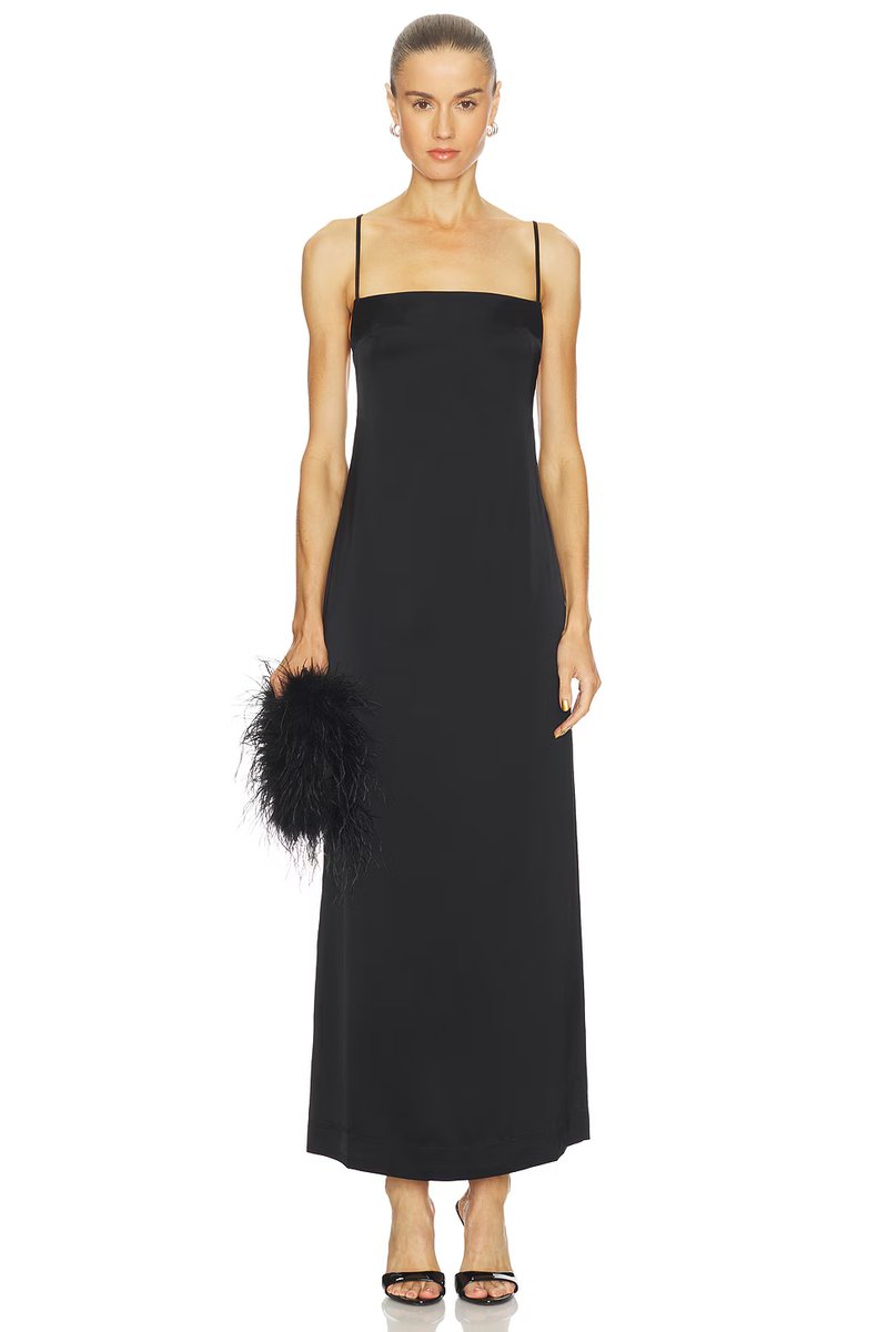 The Revolve Phoebe Slip Dress with Satin Finish in Black is ideal for evening, night out.