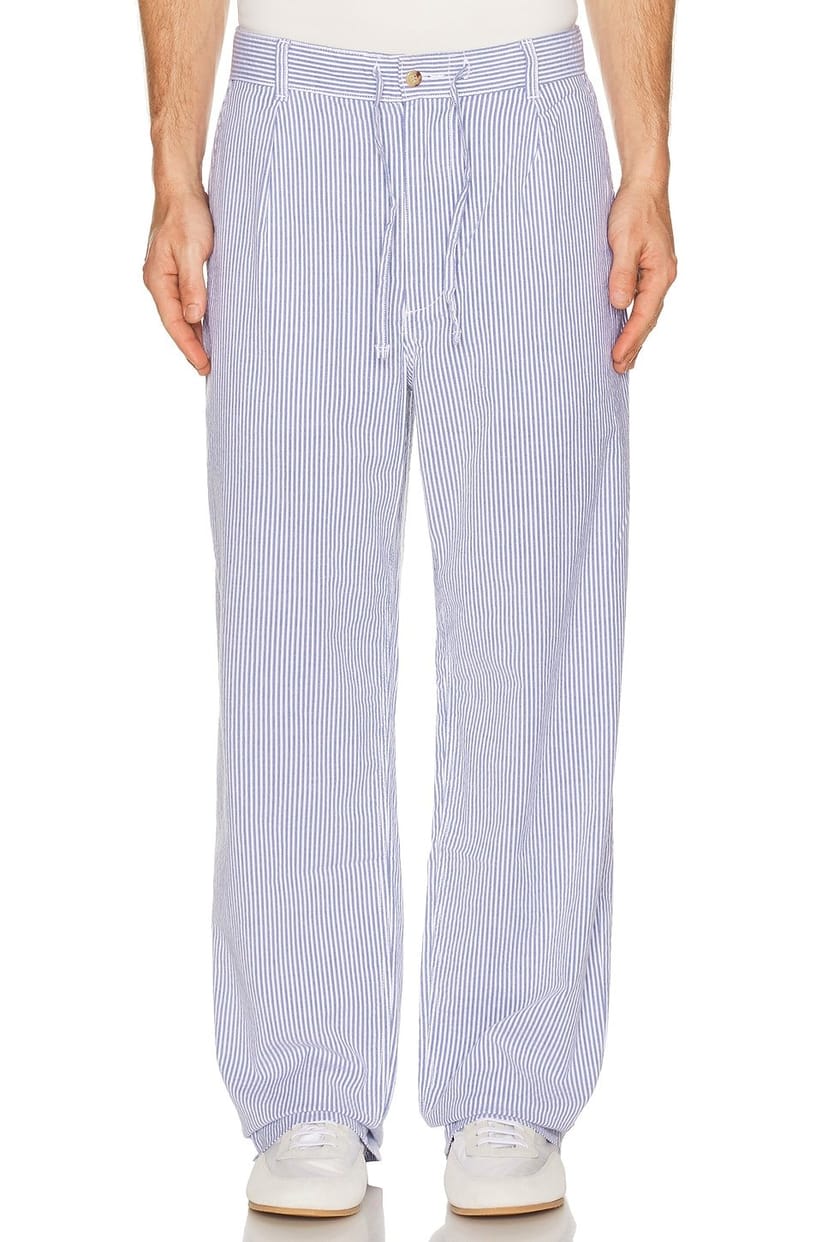 See all outfit ideasBlue and White Seersucker Single Pleat Drawstring Pant — the perfect summer trouser for casual and smart-casual events. Designed with blue and white seersucker, drawstring waist, pleated front, straight leg, cotton. Features a relaxed, summery style for a versatile look.