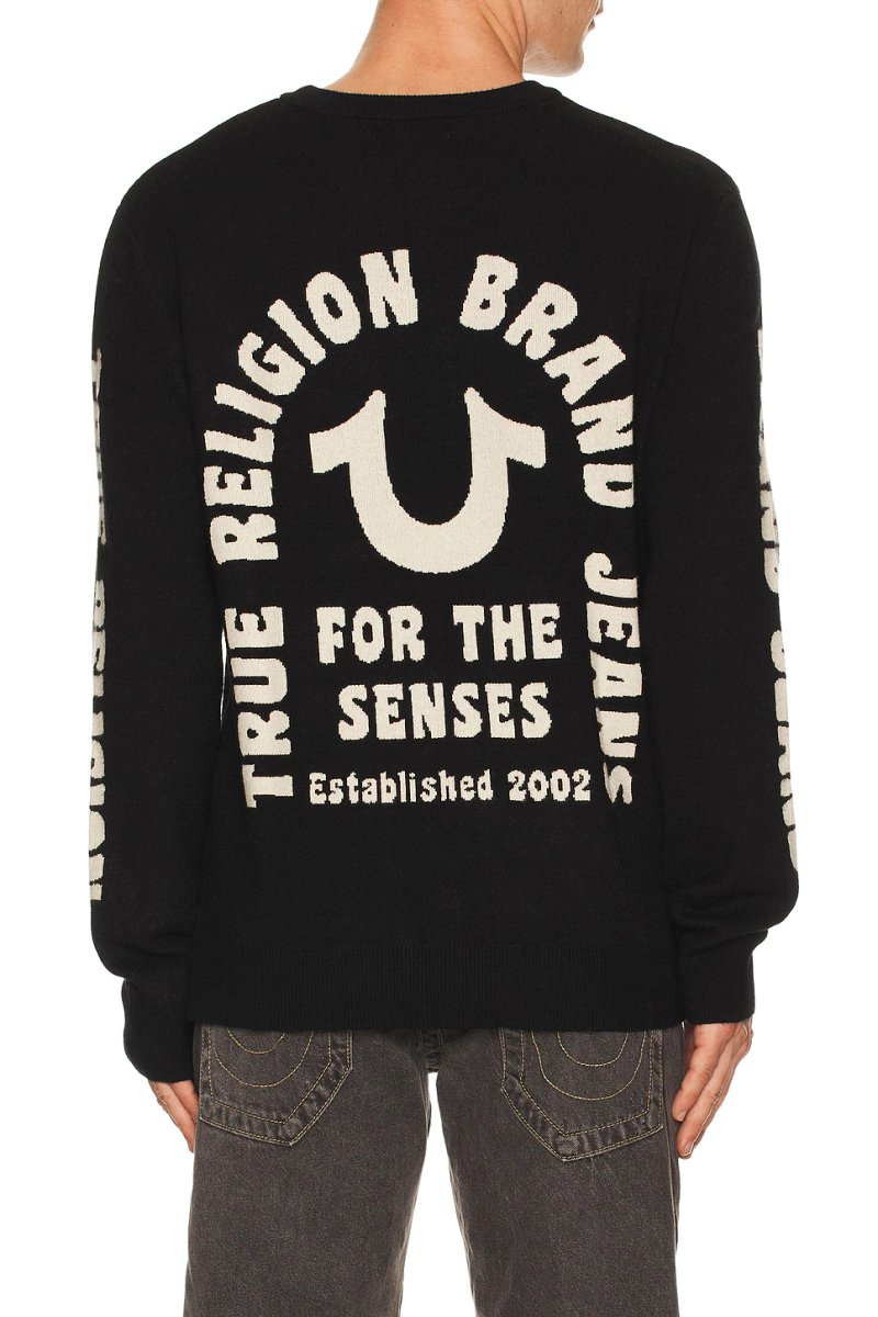 This black crew neck relaxed fit knit jumper from True Religion is perfect for a casual look. The subtle logo detailing adds a stylish touch.