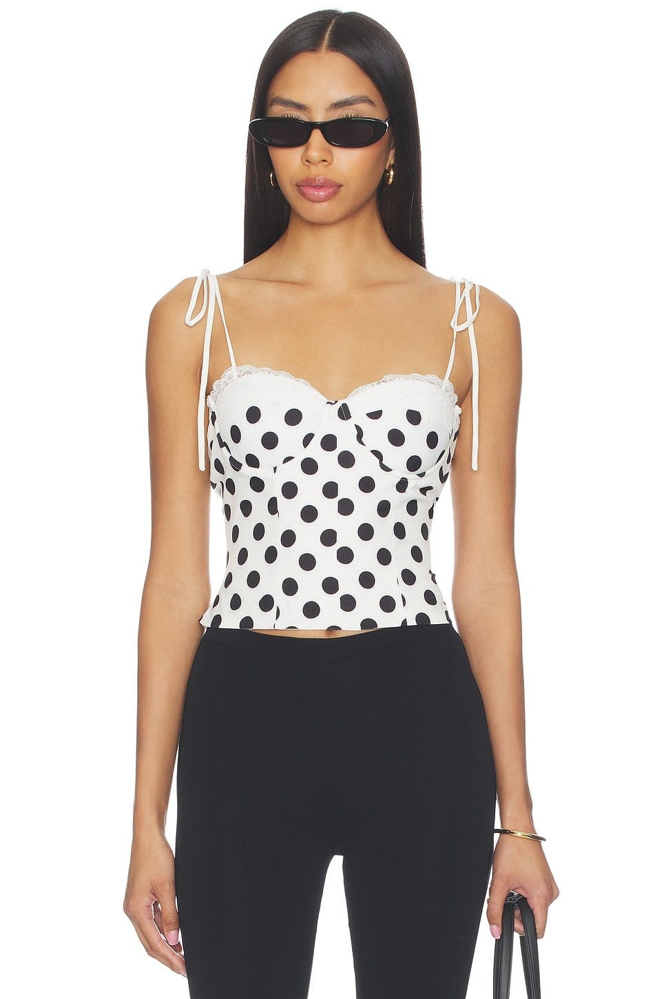 The Revolve White & Black Dot Polka Dot Crop Top is ideal for casual, everyday.