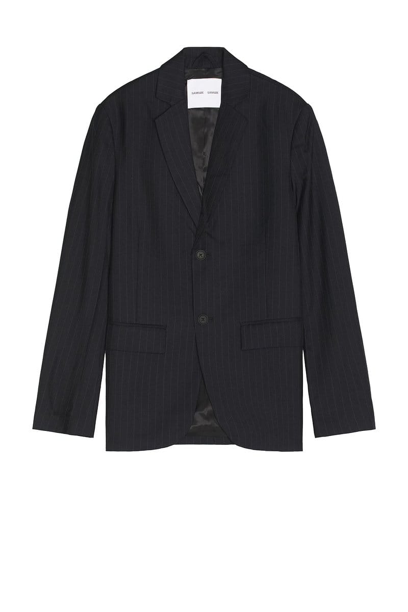 The Revolve SAMSOE SAMSOE Pinstripe Blazer in Black is available in sizes XXXL, XXL, XL, XS, L, M, S.