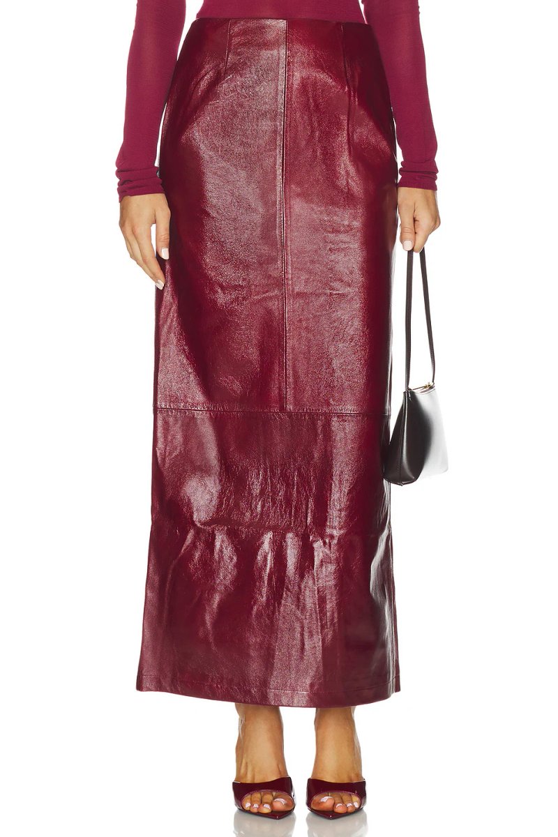 The revolve Elegant Leather Midi Skirt in Oxblood is ideal for work, smart-casual, casual.