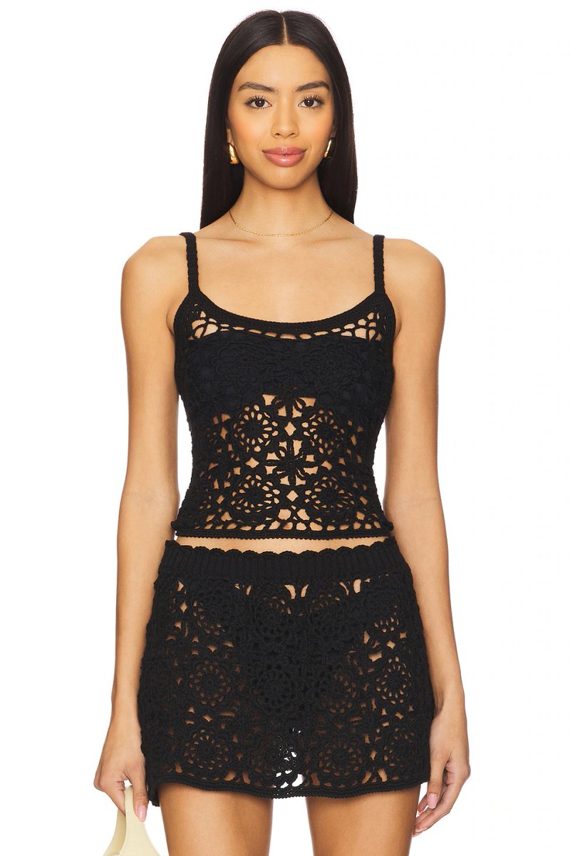 The Revolve Seaside Crochet Cami in Black is ideal for beach, casual, summer.