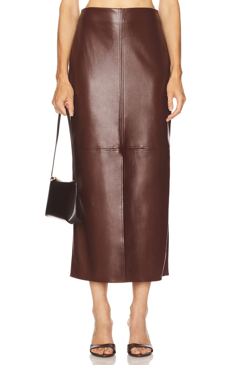 The Revolve Leather Midi Skirt in Ancora is ideal for casual, evening, smart-casual.