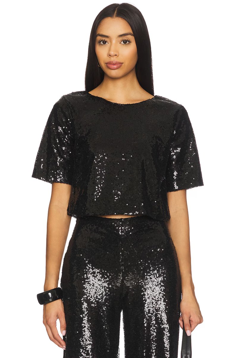 The Revolve Sequined Short Sleeve Top in Black is ideal for evening, party.