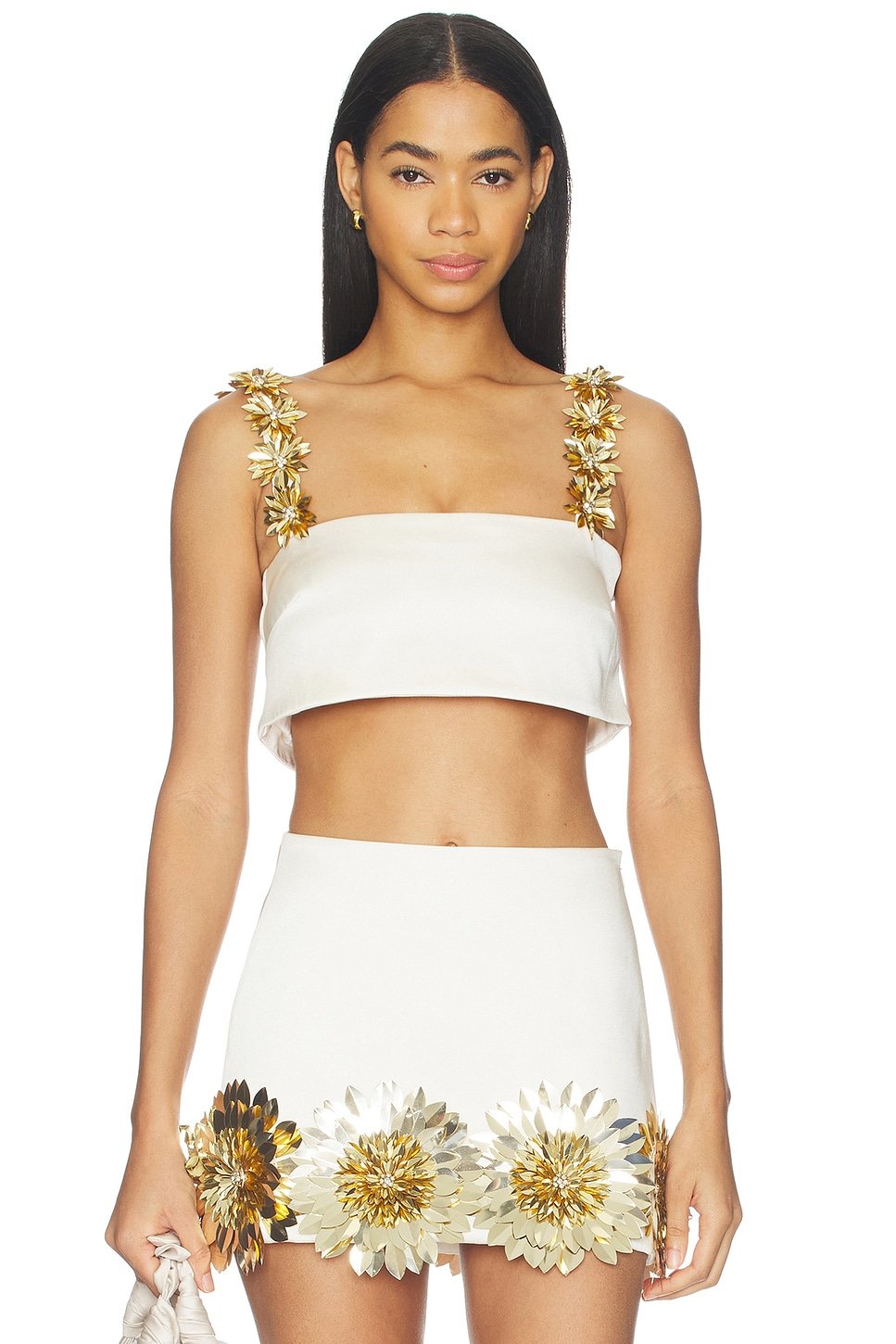 The Revolve Sinead Top with Floral Embellishments in Cream & Gold is ideal for party, evening.