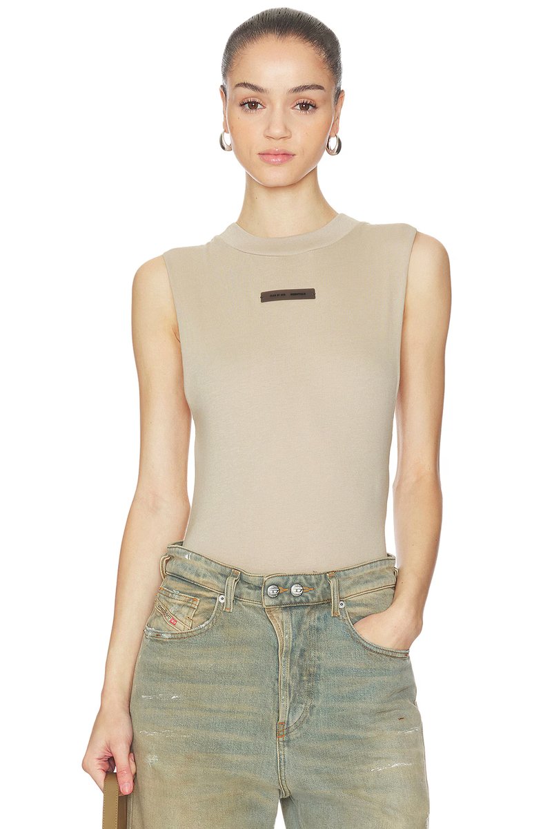 Designed with a sleeveless silhouette, this Fear of God ESSENTIALS Bodysuit is crafted in Timber for a versatile and stylish look. Perfect for a sleek, minimalist aesthetic.