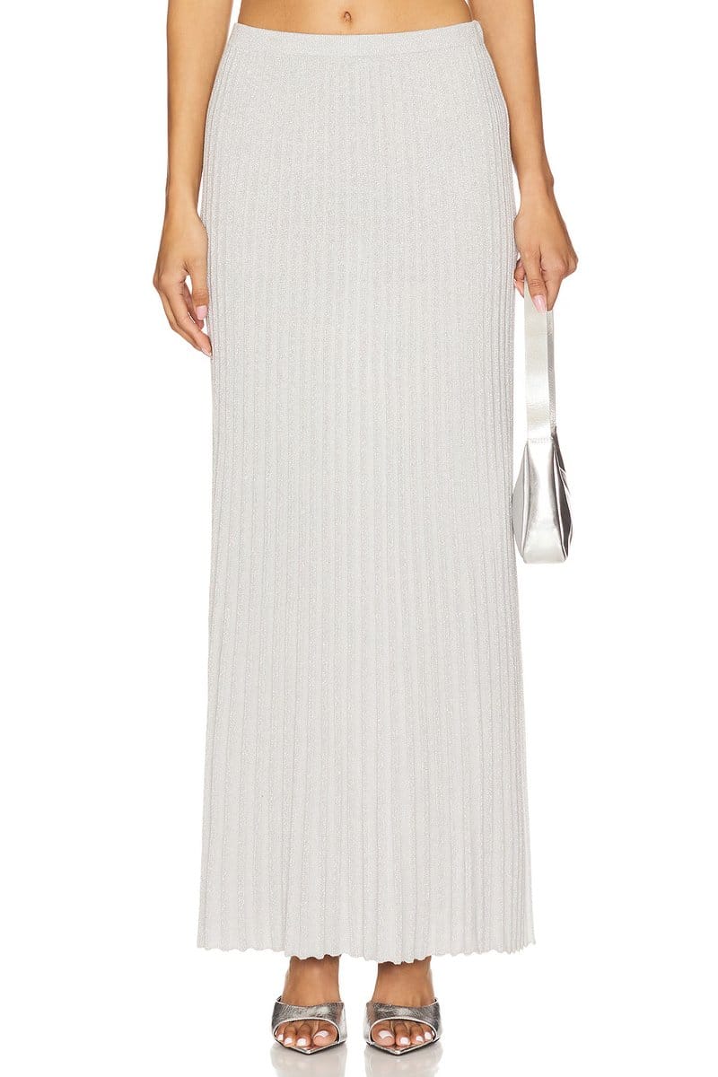 The Revolve Lurex Pleated Maxi Skirt in Glacier Grey is ideal for evening, party.