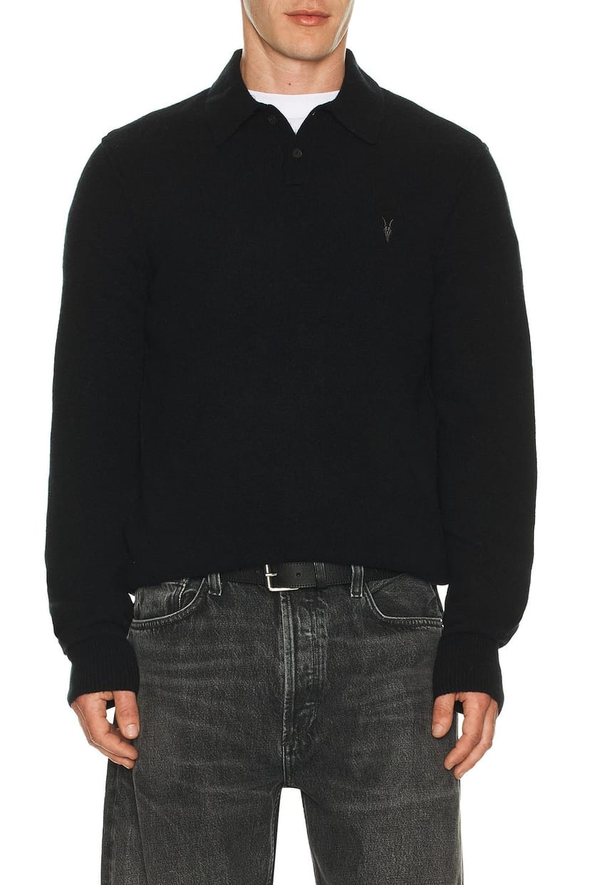 The Statten Long Sleeve Polo from Revolve is crafted in a black color. This piece features a buttoned collar and long sleeves, making it perfect for layering.