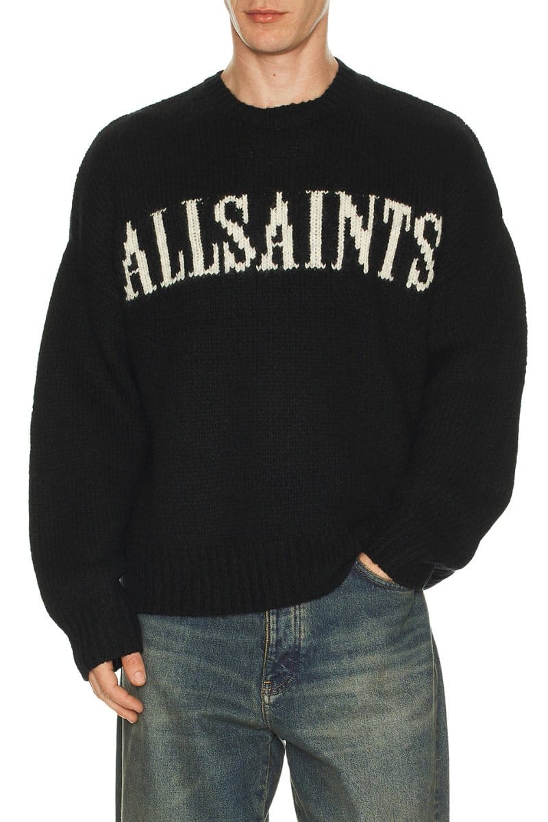 The ALLSAINTS Classic Crew Neck Jumper in Black & Ecru White is available in sizes XXXL, XXL, XL, XS, L, M, S.