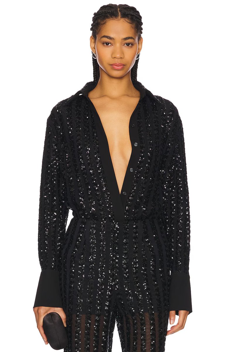This black sequin blouse from Revolve is a standout piece with its long sleeves and elegant design. Perfect for adding a touch of glamour to any outfit.