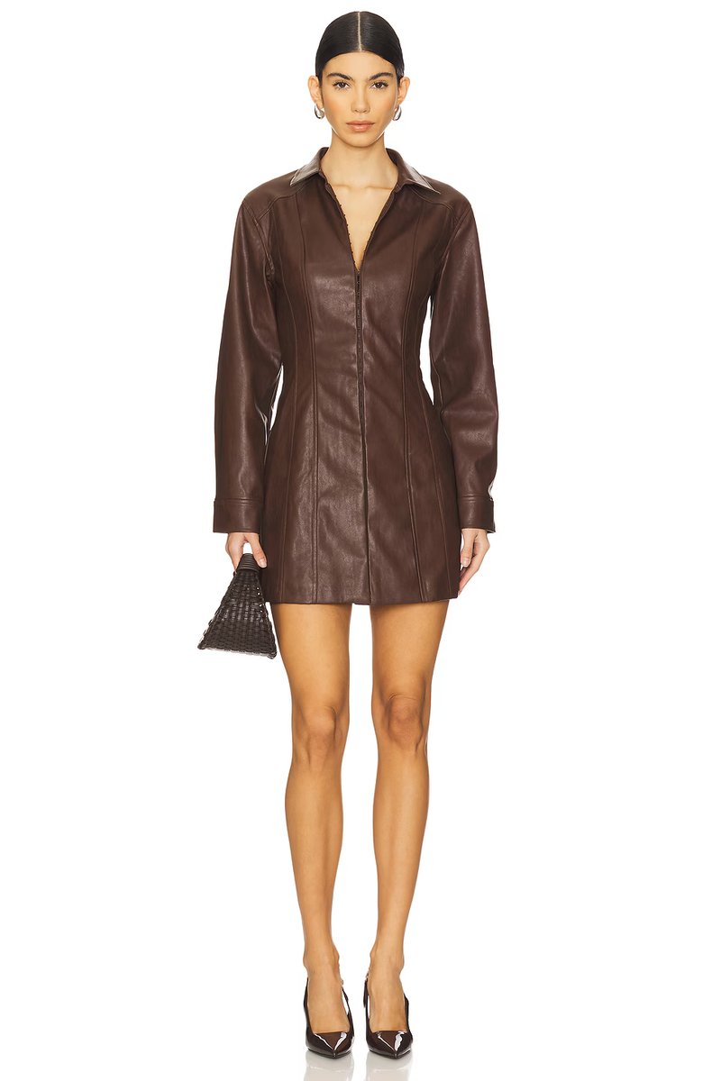 The Revolve Leather Long Sleeve Shirt Dress in Deep Coffee is ideal for casual, smart-casual.