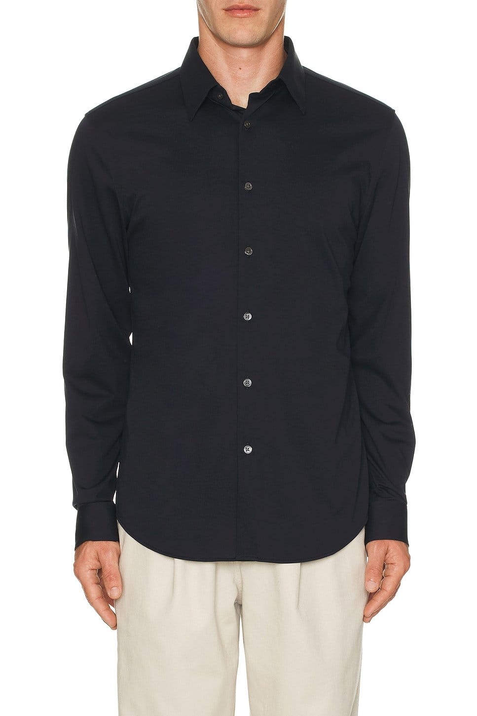 The Revolve Eclipse Black Structure Knit Shirt by Theory is ideal for casual, formal, everyday.