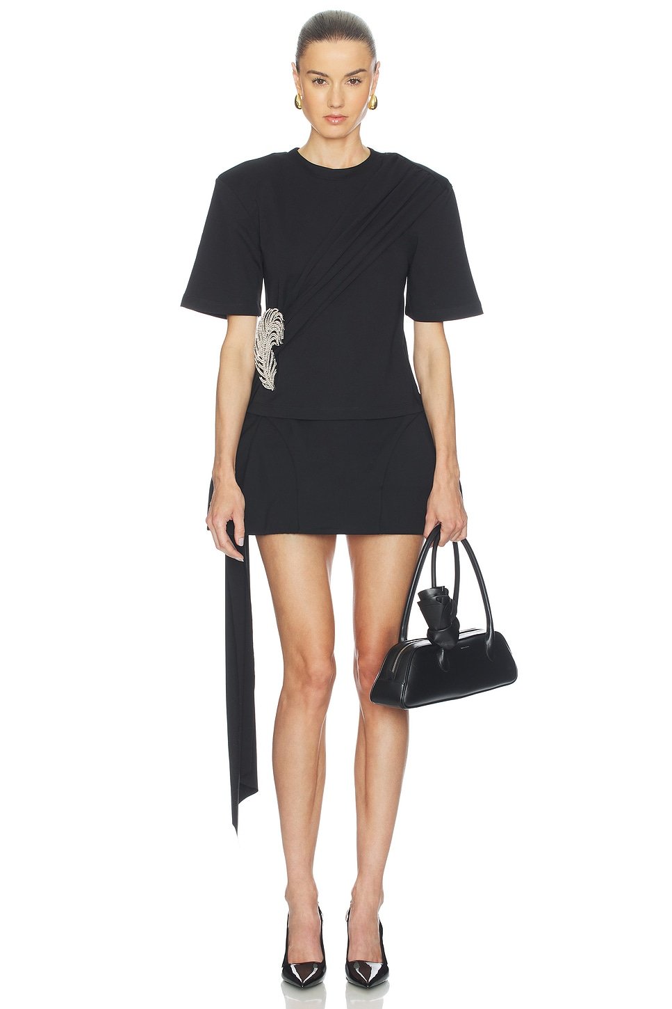Crafted with an exquisite embellished design, this black short-sleeve T-shirt adds a touch of sophistication to your wardrobe. Made from high-quality cotton, it offers a comfortable fit.