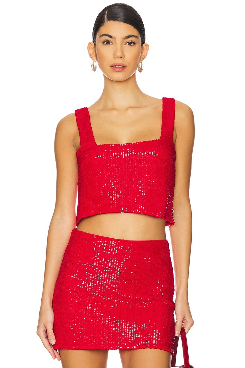 The Revolve Show Me Your Mumu Sequin Crop Top in Red is available in sizes XXXL, XXL, XL, XS, L, M, S.