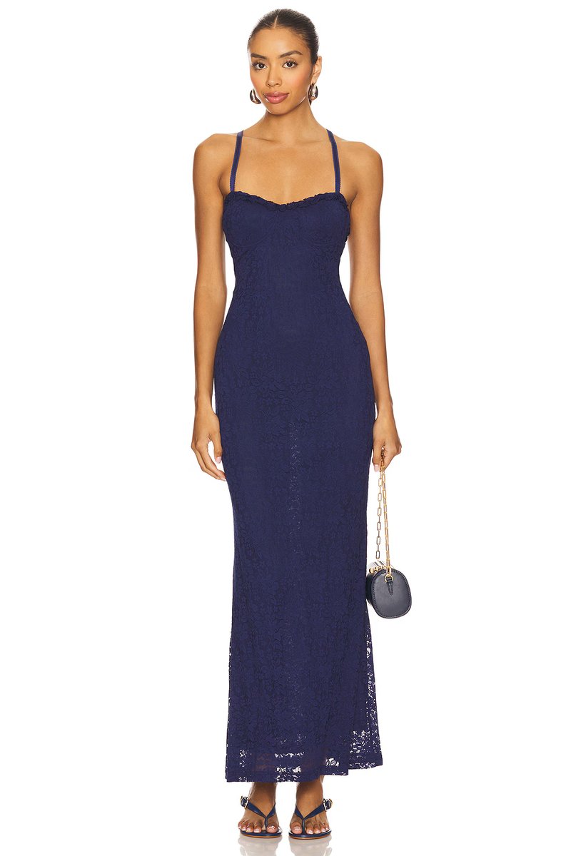 The Revolve Tasmin Maxi Dress with Lace Detail in Navy is ideal for evening, formal, party.