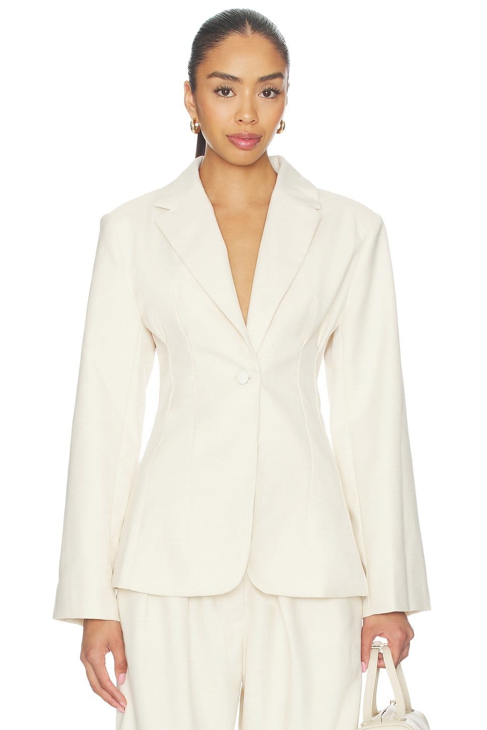 The Revolve Ivory SOLAQUA Emery Blazer is ideal for professional, smart-casual, evening.