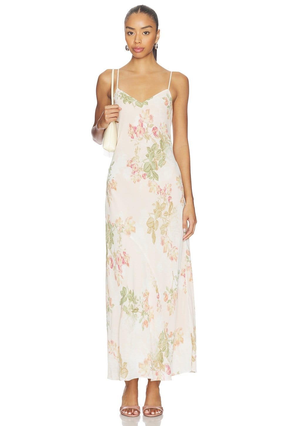 The Revolve Light Peach Rose Floral Print Maxi Dress is ideal for evening, casual, date-night.