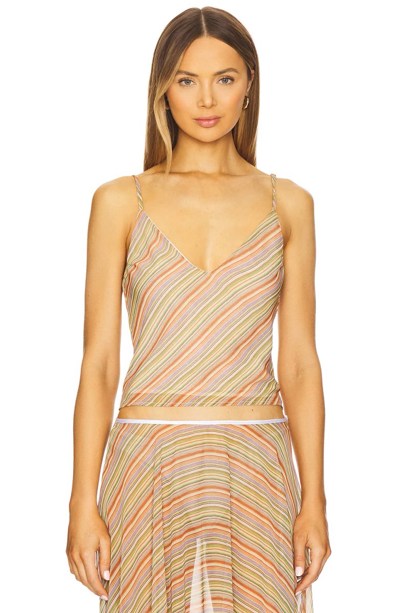 The Revolve Bella Venice Multi-Stripe Cami Top in Yellow is ideal for casual, beach, weekend.