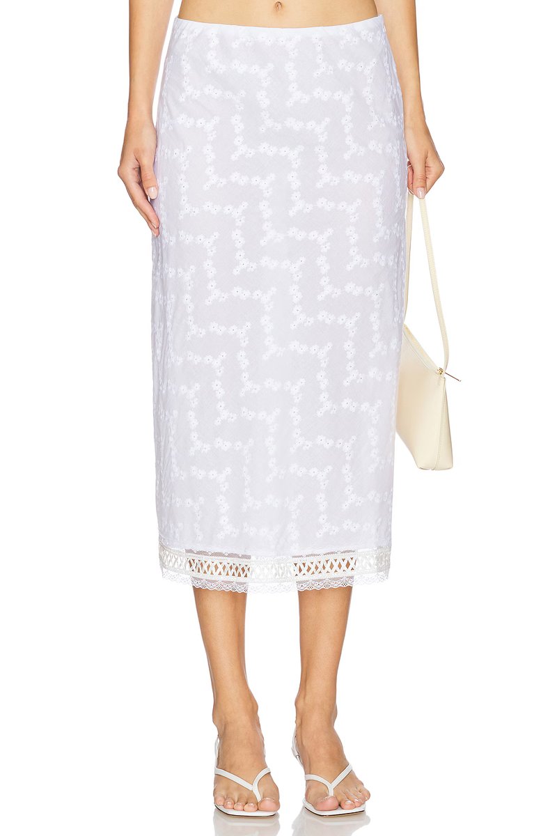 The Revolve Bella Venice Eyelet Ivory Floral Midi Skirt is ideal for casual, party, weekend.