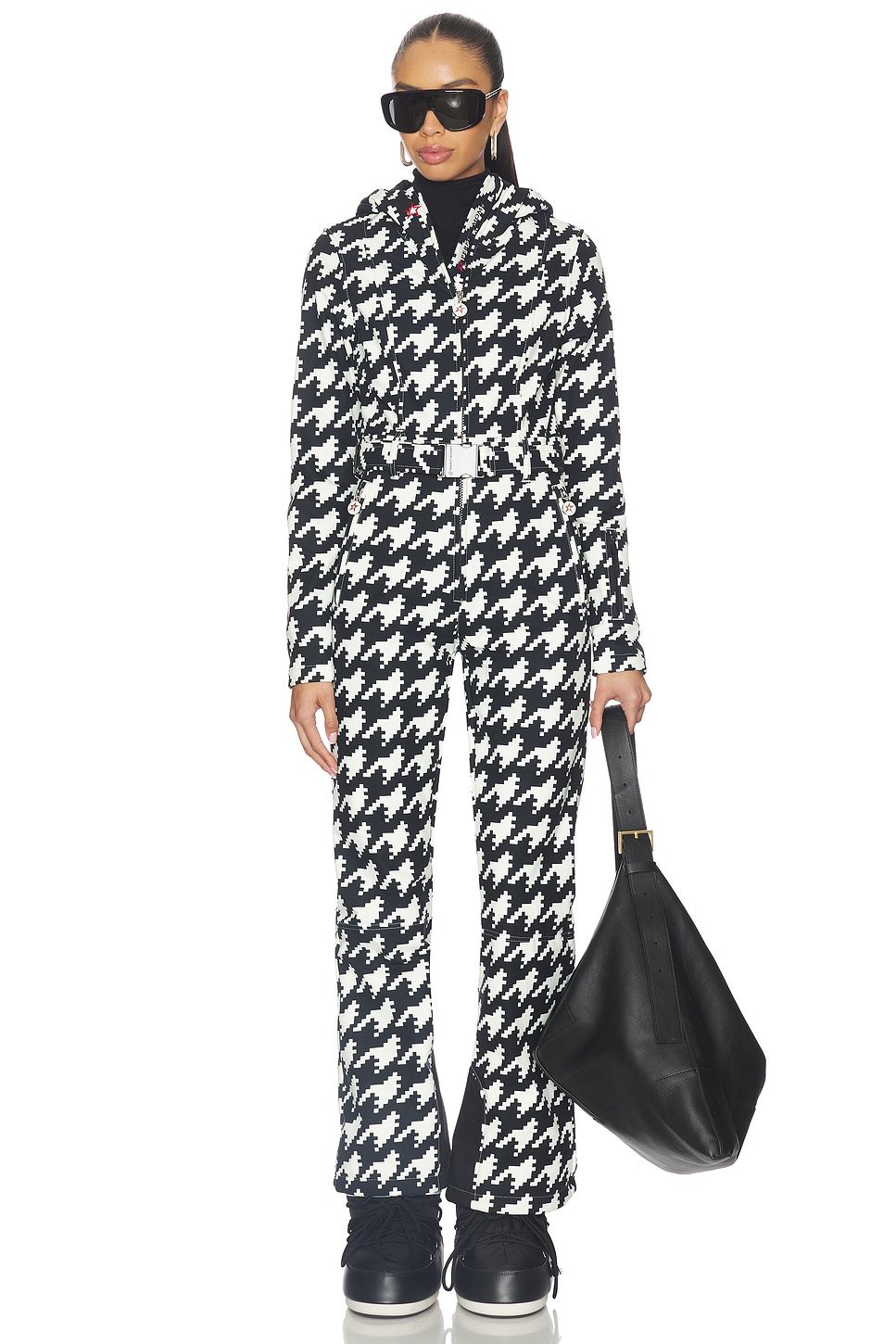 The Revolve Tignes Ski Suit II in Black & White Houndstooth is ideal for casual, smart-casual.
