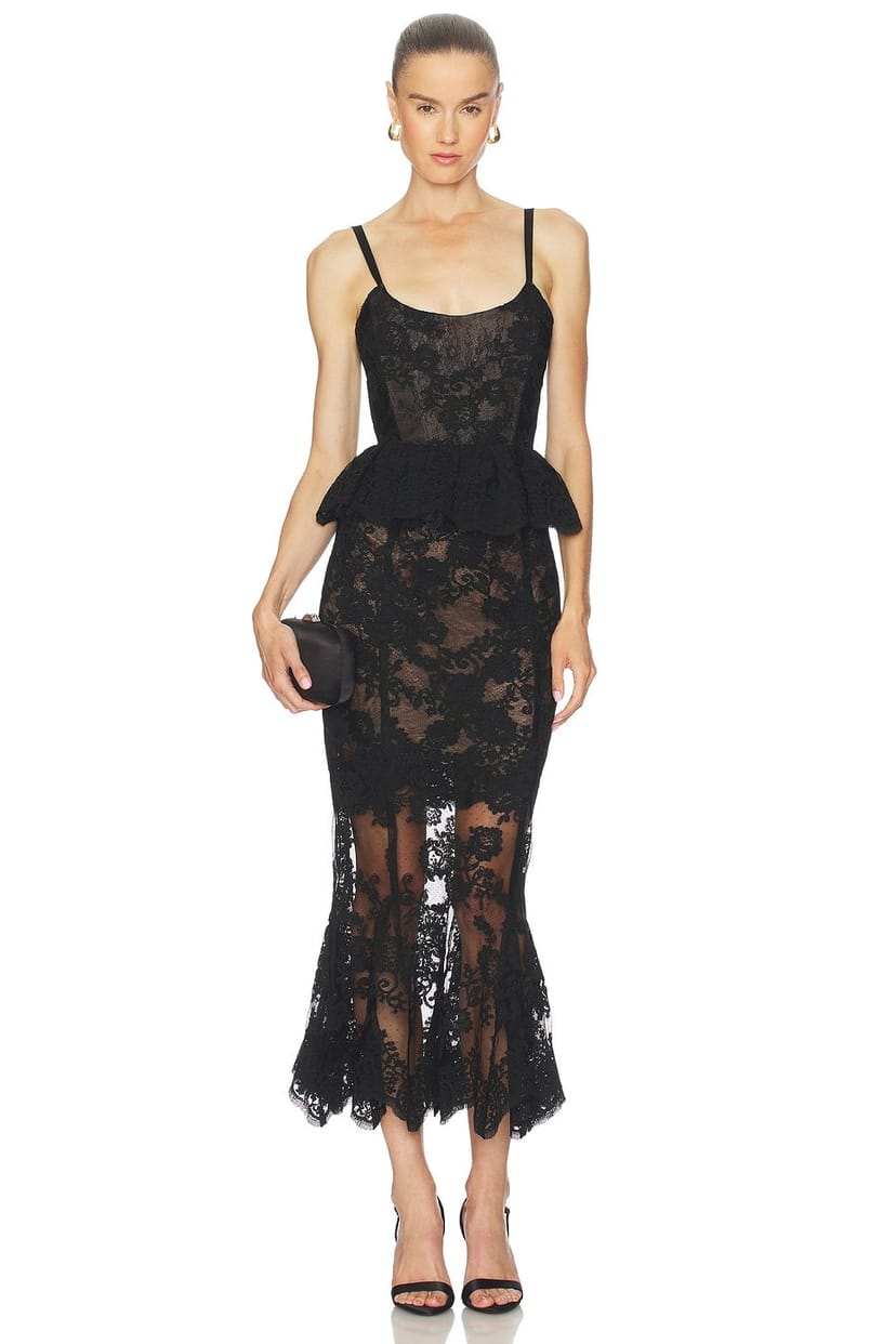 The Revolve Vinetta Lace Midi Dress in Black is ideal for evening, formal.