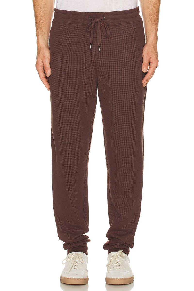 The Waffle Jogger from Revolve comes in a rich Java hue, designed for ultimate comfort and style. Featuring a textured waffle knit, these joggers are perfect for lounging or casual outings.