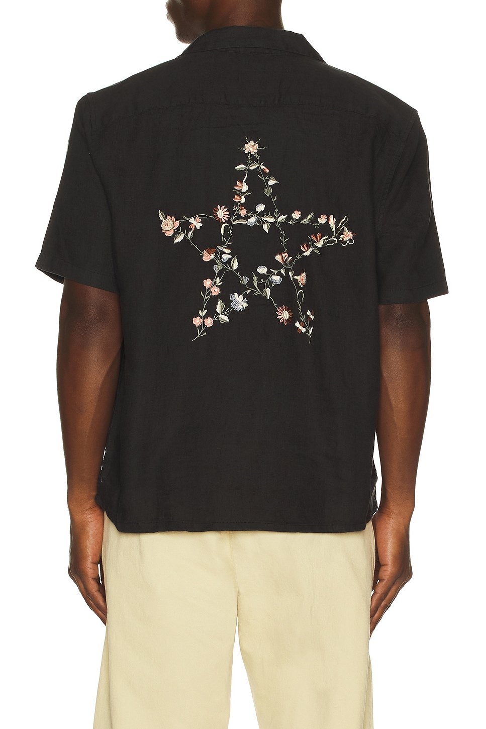 The Revolve ALLSAINTS Floral Embroidered Short Sleeve Shirt in Black is available in sizes XXXL, XXL, XL, XS, L, M, S.