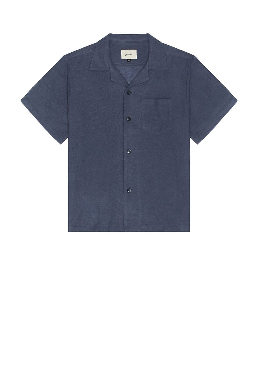 The Revolve Wool Gauze Camp Shirt in Steel is available in sizes XXXL, XXL, XL, XS, L, M, S.