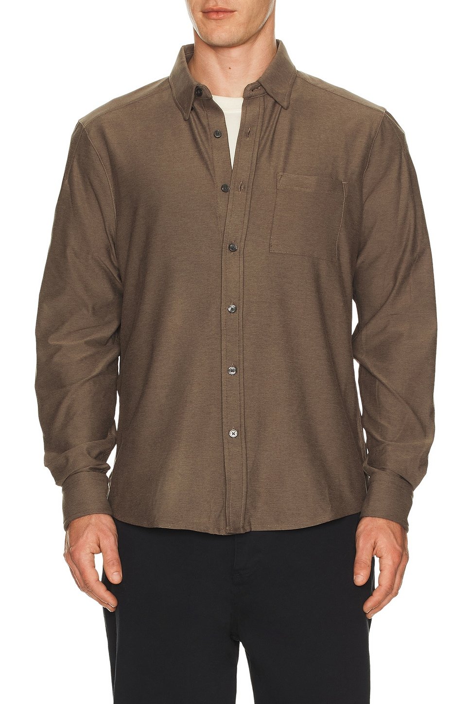 The Revolve Rhone Work From Home Shirt in Mushroom Brown is ideal for casual, work.