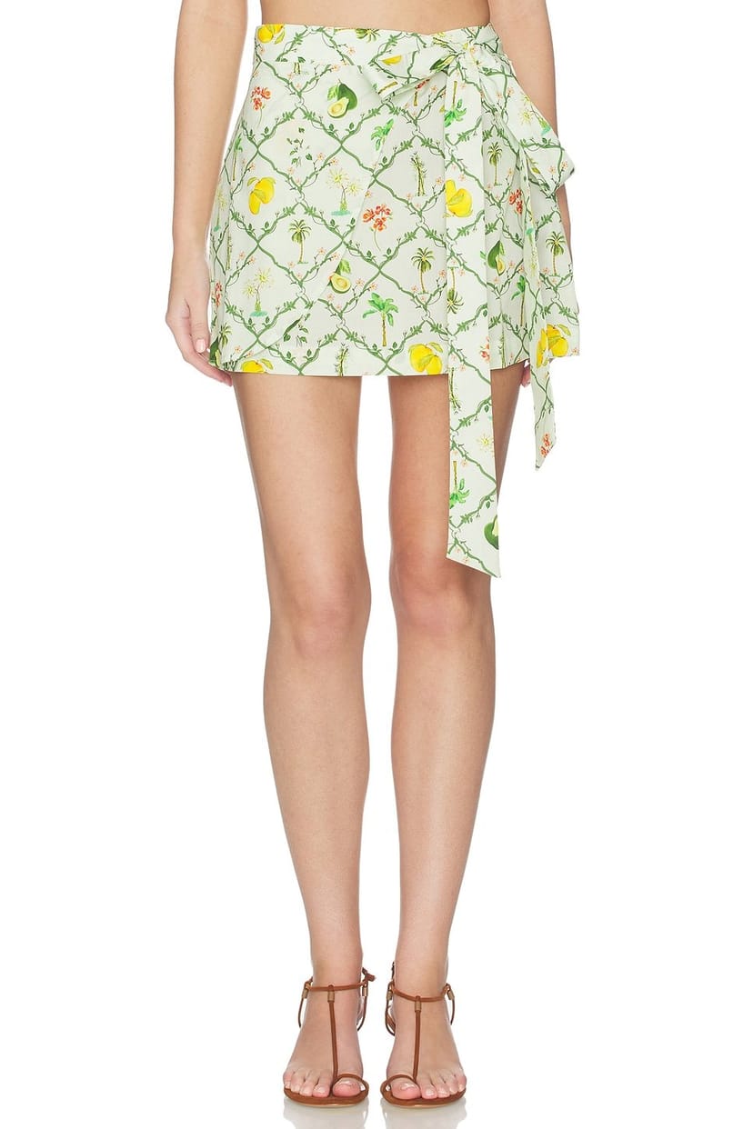 Elegant and vibrant, the Wrap Mini Skirt by Verandah features an ivory multi motif checks pattern with a wrap-around design. Perfect for those who love to add a touch of nature-inspired flair to their wardrobe.